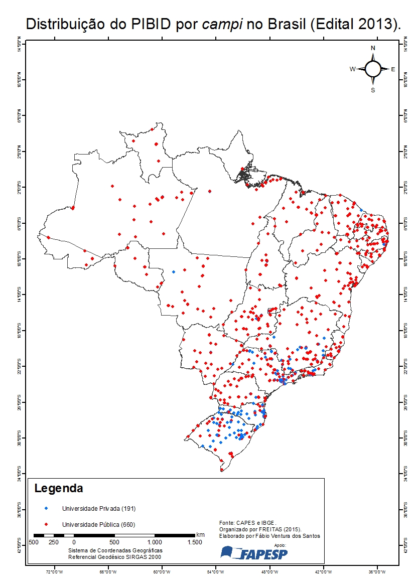 O presente trabalho apresenta o Programa Institucional de Bolsa de Iniciação à Docência (Pibid) em sua dimensão territorial e política. A partir de dados fornecidos pela Capes, produzimos o mapeamento dos projetos institucionais do Pibid presentes nas instituições de ensino superior nas diversas categorias administrativas o que nos possibilitou entender essa política nas suas diferentes escalas além de contribuindo para o entendimento do programa na formação inicial e continuada de professores, e no espraiamento das licenciaturas no território nacional frente às políticas públicas educacionais para o ensino superior.