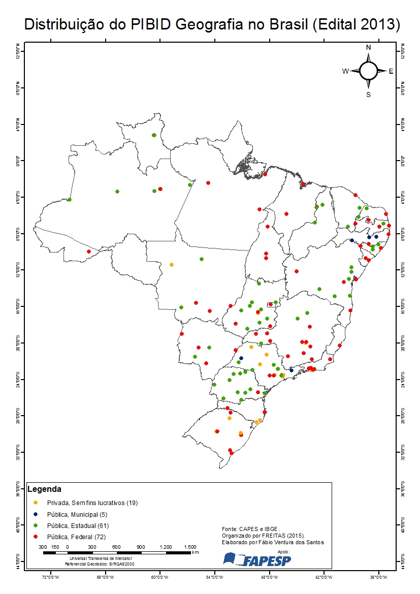 - Mapa 7: Distribuição dos subprojetos de Geografia no Brasil