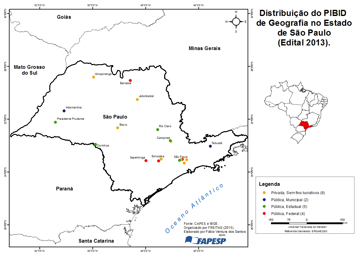 - Mapa 9: Distribuição do Pibid Geografia no estado de São Paulo
